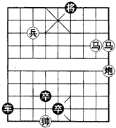 棋势与对策:黑方小卒剜心,车将或卒将要杀。红方必须用追的兵法,双马追将,以追取胜。