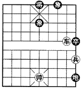 棋势与对策:黑方炮保卒。红方则用追的兵法,追炮,追象,追卒,以追取胜。