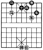 棋势与对策:红方车将,吃象捉马,挂角提车要杀。黑方必须用兑的兵法,以兑逼和。
