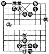 ②车一平四,献车将军,堵塞象眼,保炮保兵将军,这是红方取胜的关键之着!