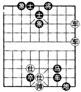 棋势与对策:黑方车、卒、将占中。红方先横车保兵冲,然后,用剜的兵法,小刀剜心,以剜取胜。