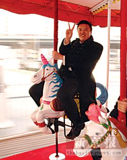 商量好送货的事,张博一身轻松,“减肥指日可待了!”他笑呵呵地说。路过SOHO广场的一座大旋转木马时,他的孩子劲头又被勾起来了。“门票多少?”他怀着试探的心理凑过去问管理人员。不想得到的回答竟然是:“免费。”此时不试,更待何时?张博一声欢呼,向漂亮的木马扑去。