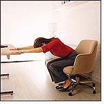 2、要保持你的大拇指在下面其他的手指在上面。把你的脚抬离地面,收缩你腹部,慢慢向后推你的椅子,直到你在看着地面,你的头在你的双臂之间。