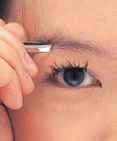 拔眉时把皮肤拉平,然后一根一根地拔眉毛,用眉钳夹紧眉毛的根部,朝着眉毛的生长方向拔,这样不会把眉骨上的皮肤拉松。
