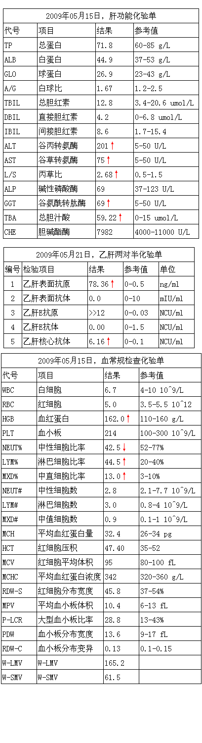【我的肝功能和乙肝两对半化验单在这里】