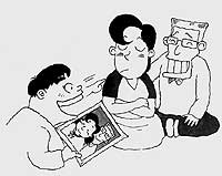 爸爸站起来走到卧室里,过了一会儿,手里拿着一张照片走了出来,看到那张照片后,妈妈的脸更红了。