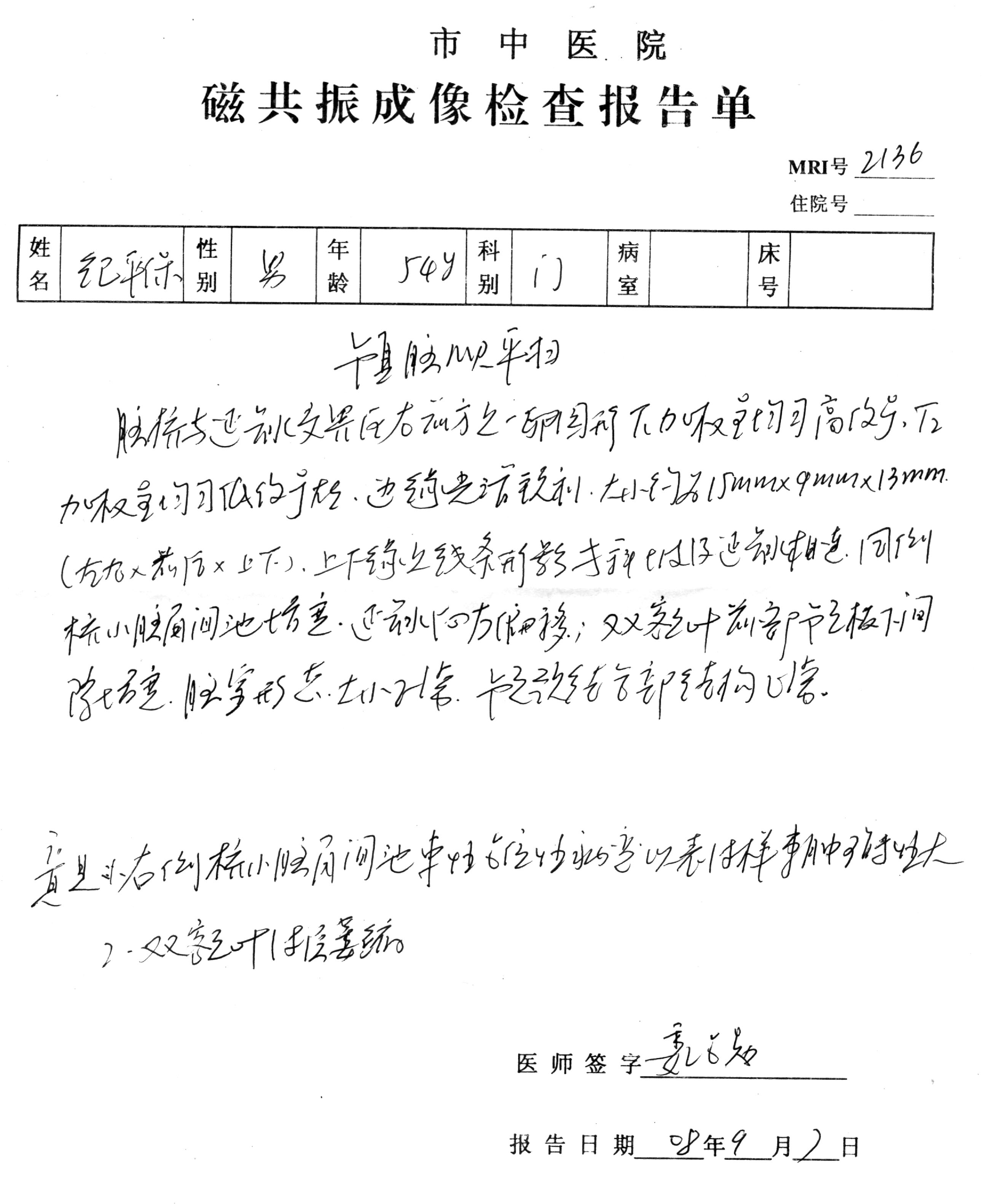 磁共振报告扫描图片地址: