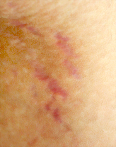 要是萎缩纹就不用怕了,不过瘀斑和萎缩纹是有区别的。你自己好好对照一下。